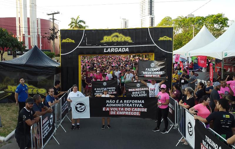 O presidente do SINPAIG, Antonio Wagner, não apenas marcou presença — ele correu lado a lado com os servidores, empunhando uma faixa com o grito de luta: “O salário parou, mas a inflação disparou! RGA já!”. Desde a largada, acompanhado de outros representantes do sindicato, Wagner transformou a corrida em um ato simbólico de resistência e valorização do funcionalismo público.
