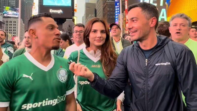 O mato-grossense Devid Raphael, de 29 anos, natural de Mirassol d’Oeste — a 290 km de Cuiabá — e morador de Massachusetts há quase dois anos, foi um dos participantes da “invasão alviverde” à Times Square. Em entrevista a um jornalista esportivo, Devid arriscou um palpite: o time paulista deve vencer o Porto por 2 a 1, com gols do colombiano Richard Ríos.